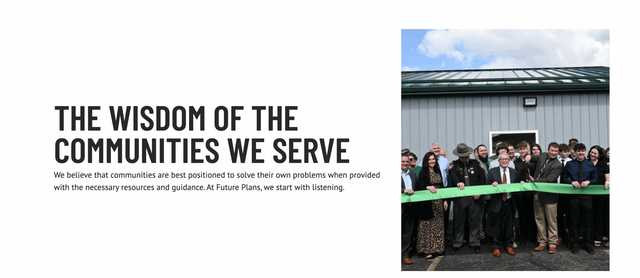 Плани на майбутнє розпочалися з Grit, проекту, спрямованого на підтримку молодих людей в окрузі Адамс, штат Огайо. Спочатку розпочався як ініціатива невеликої групи людей, які стурбовані безробіттям, наслідками опіоїдної епідемії та відсутністю перспектив на майбутнє, GRIT швидко розширився, щоб охопити 32 округи в Аппалахії. Успіх проекту випливає не лише від надання можливостей працевлаштування, а й від усунення бар’єрів, які заважають людям знаходити роботу, від догляду за дітьми та транспортування до відновлення наркоманії та доступу до освіти.