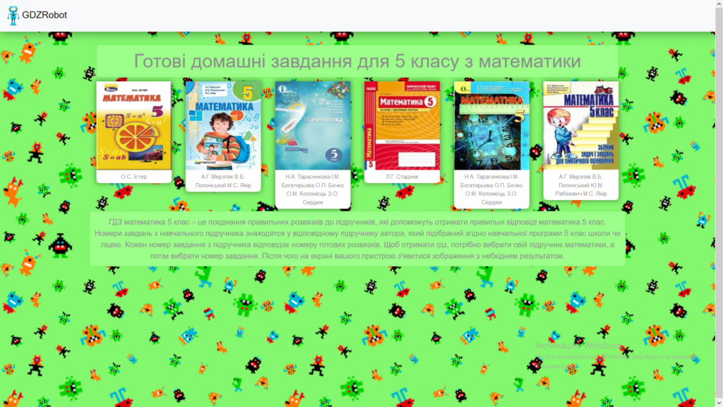 Раніше були книги-решебники з усіх предметів, від математики до літератури. В даний час книги не настільки популярні, а ось гідна інформація є в інтернеті. Головне знати, яким джерелам можна довіряти. Хочемо порекомендувати вибрати готові домашні завдання математика 5 клас на сайті .
